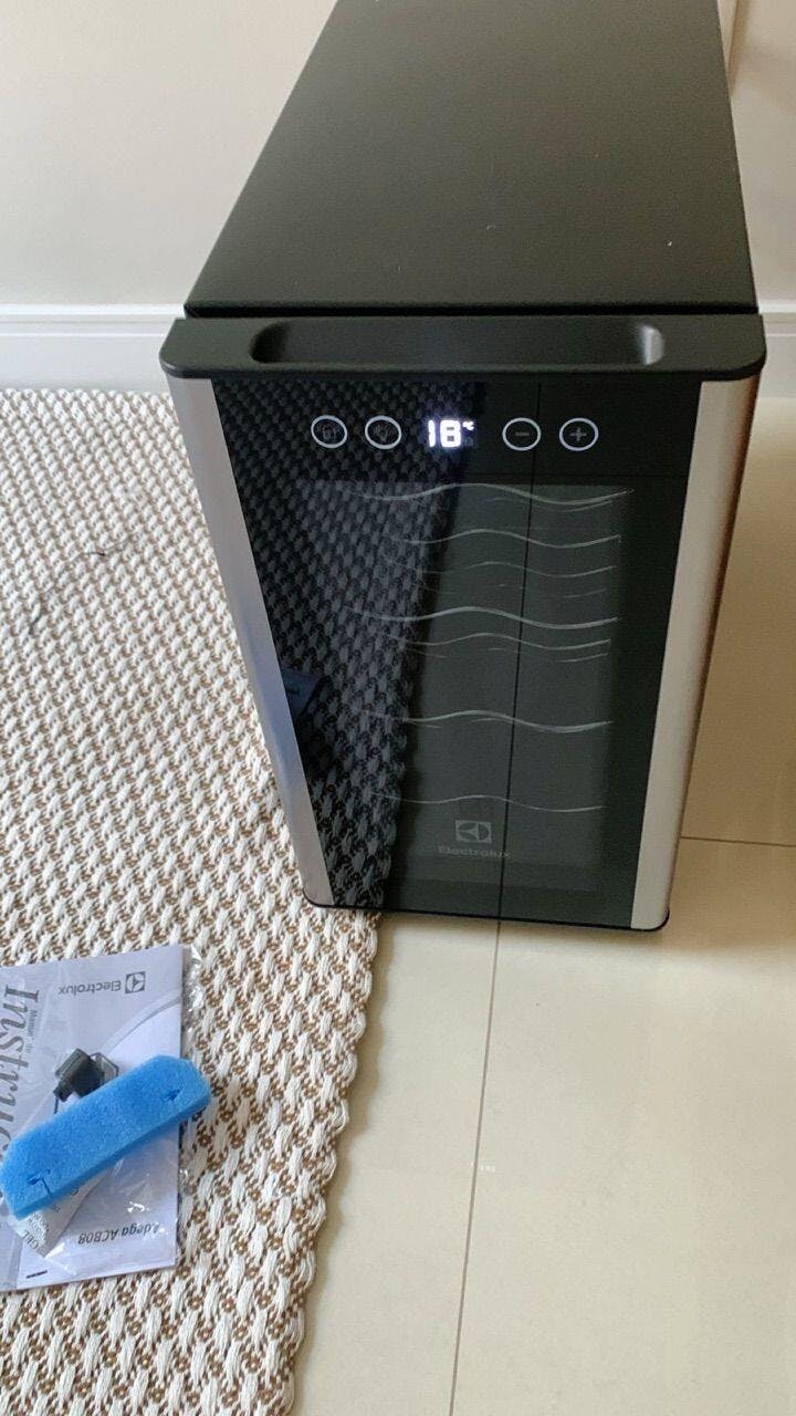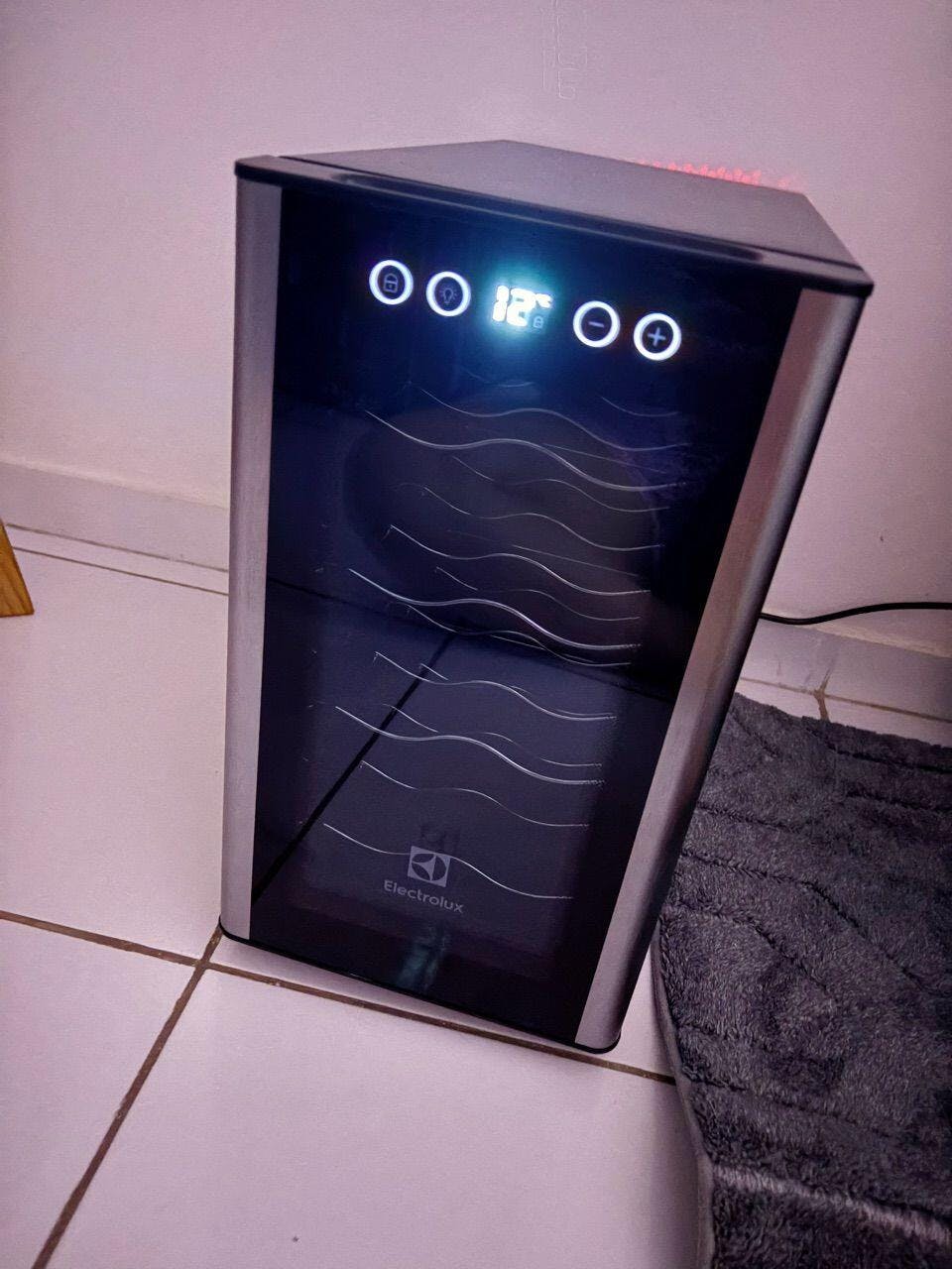 Adega climatizada 12 garrafas   Vinho deixa qualquer momento ainda mais gostoso. E para garantir que um vinho ruim não azede tudo, é preciso ter cuidado. Na adega   ACB12 você guarda até 12 garrafas em prateleiras ergonômicas que garantem que o sabor da sua coleção de vinhos não mude. Por falar em coleção, na hora de escolher o rótulo para o jantar com a paquera nova nem precisa abrir a porta da adega climatizada. Com iluminação de LED, você consegue visualizar todas as garrafas. Com a escolha feita, é só ajustar a temperatura no painel Touch Control, para que o vinho esteja perfeito na hora de servir. Design e sofisticação Adega com acabamento em alumínio escovado oferece mais durabilidade e sofisticação. Sistema de iluminação interna com leds: pequenos emissores de luz que não danificam as características originais do vinho. Para todos os espaços Compacta e elegante, essa adega é ideal para qualquer espaço da sua casa.