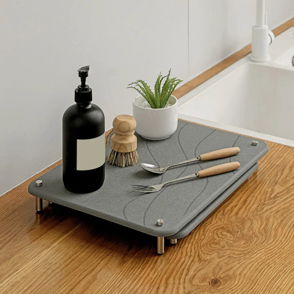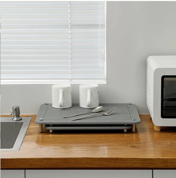 Eco-Friendly: Fabricado em terra diatomácea, este tapete à prova de umidade para utensílios de mesa é totalmente ecológico, não tóxico e altamente durável. Não acumula água, garantindo facilidade na limpeza. Uma escolha ideal para uso doméstico e na cozinha.